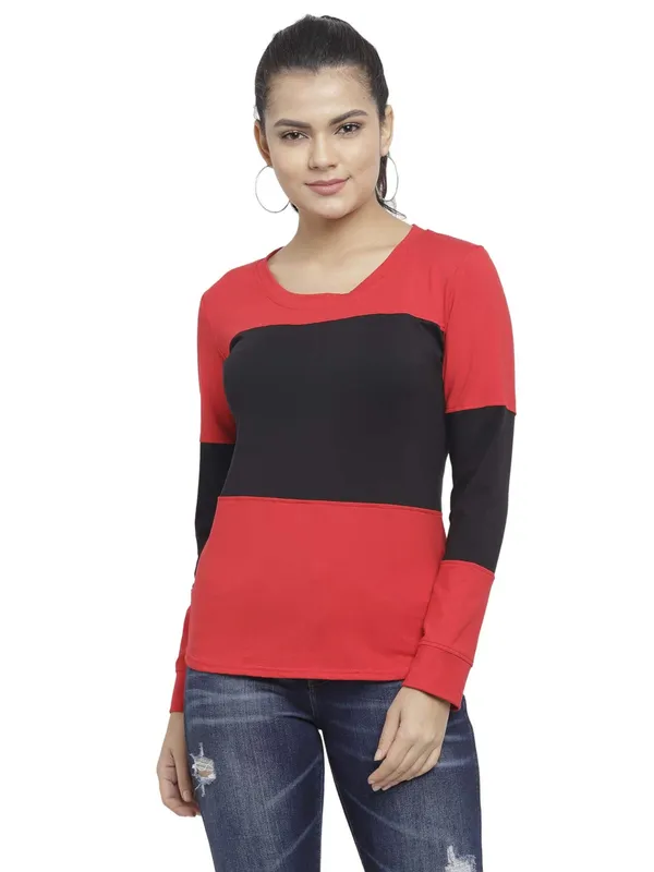 RedBlack Cotton Strechable Long Sleeves Tee Top T-Shirts For Women